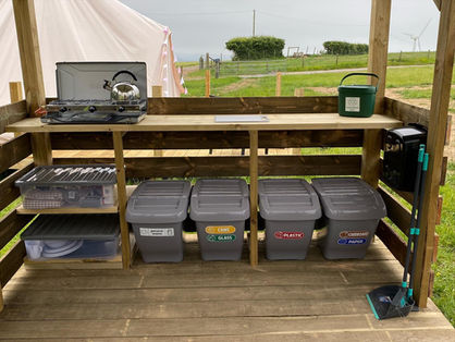We have 10 camping pitches on the farm. Each pitch comes with a private kitchen area that includes a prep area, bins including recycling, picnic bench and a fire pit. We do accept camper vans and roof tents but unfortunately we don't have ehu or waste disposal facilities at the present. We only allow a maximum of 2 tents per pitch however at an extra charge.(please see extras cost on booking)
